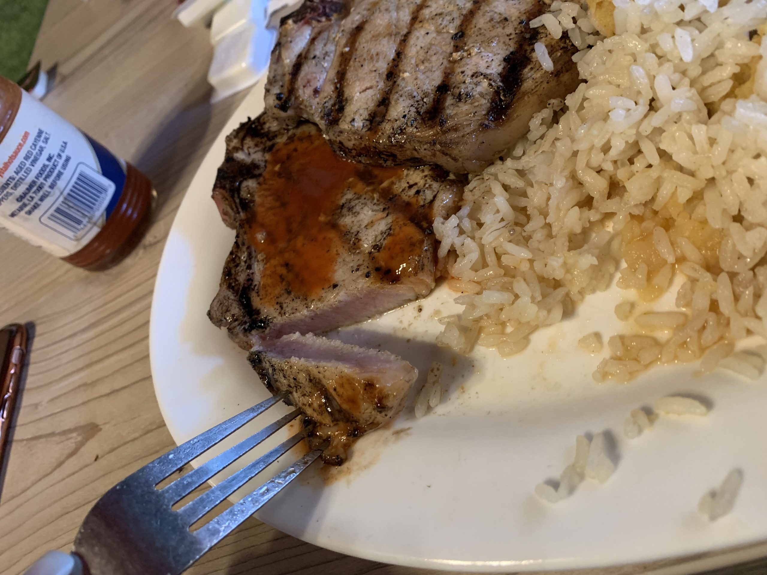 Then, there were the pork chops. The first time, the chops weren’t cooked through. (A flashback to the episode on Wednesday night) However, in their defense, our waiter brought back a plate of correctly cooked chops in less than five minutes.